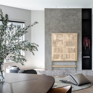 large patterned modern natural wood low cabinet with 4 handcrafted doors