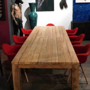 This Suar wood dining table blends the beauty of nature with sleek modern design, offering a durable, functional, and visually stunning centerpiece for any large dining space.